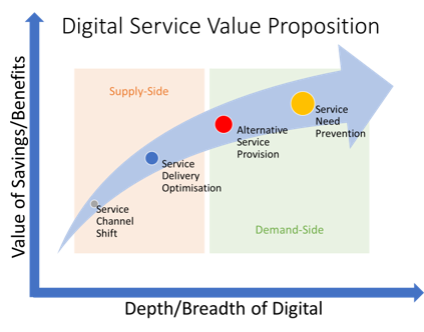 Digital transformation also enables new types and styles of service, with the aim of encouraging more timely and effective use of services to avoid more costly service demands further down the line.