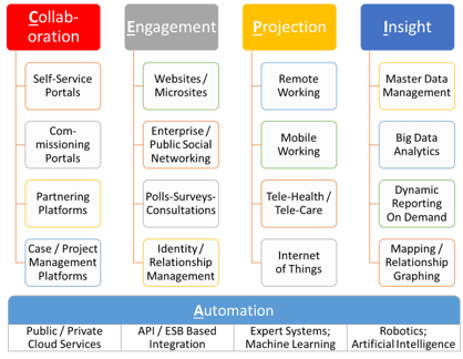 Paramis Consulting typically recommends creating standardised platforms for specific common functions to provide capabilities that can be linked together to build service-specific solutions.